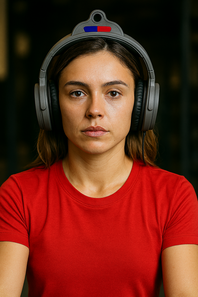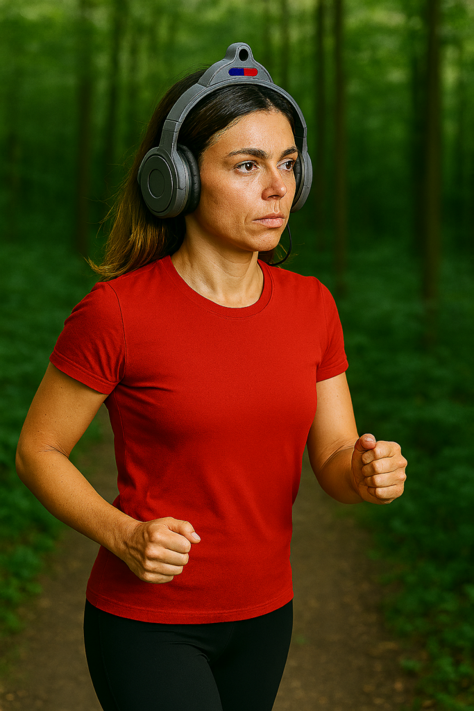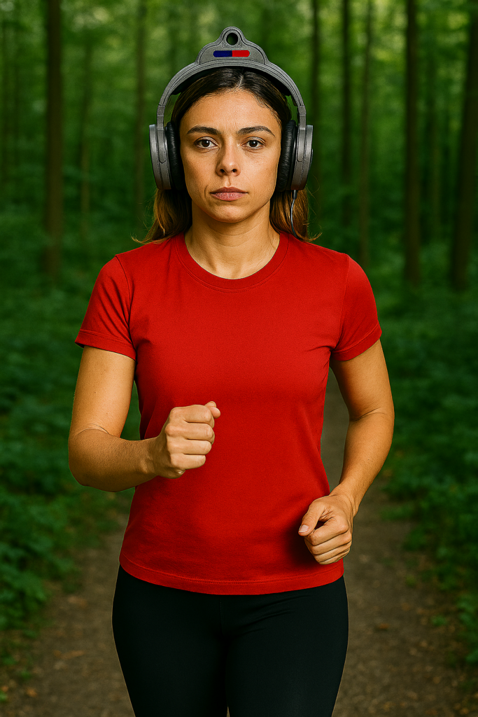 Un casque audio connecté anti‑agression, équipé d’un gyrophare, d’une caméra embarquée intégrée à l’arceau, et d’une sirène d’alarme pour dissuader les agresseurs.
