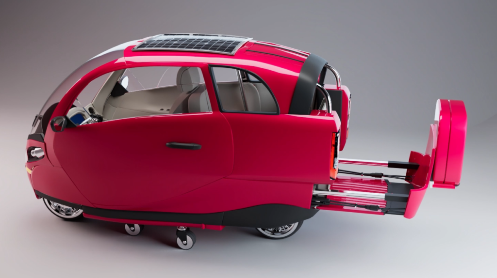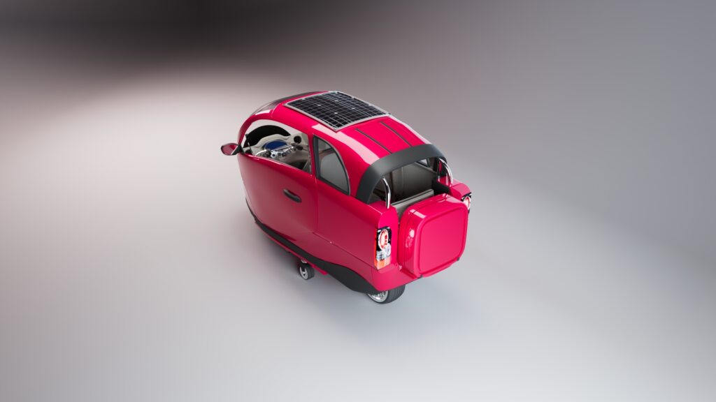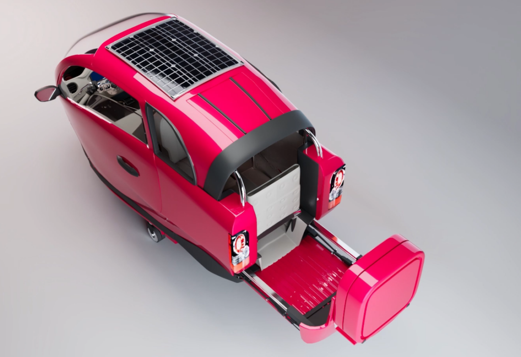 Pensée pour répondre simultanément aux défis du climat, du stationnement, de la santé publique et du pouvoir d’achat, cette voiture-vélo électrique ultralégère (4 places) sera proposée pour 1 € symbolique, afin de rendre la mobilité propre accessible à tous. Une innovation unique qui combine mobilité, santé et économie dans un seul véhicule révolutionnaire.